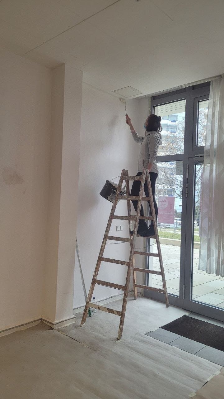 Der Frauentreff in der Marzahner Promenade wird im Juni eröffnet und brauchte dafür noch tatkräftige Unterstützung bei den Renovierungsarbeiten seiner Räumlichkeiten. Hier kamen die Teilnehmer des Kompetenzradars ins Spiel: Unter Anleitung des Malermeisters, konnten sie die gelernten Kenntnisse umsetzen und den Räumlichkeiten des Frauentreffs einen neuen Anstrich geben. Wände wurden ausgebessert, gestrichen und tapeziert.